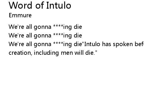 We're all gonna ****ing die"Intulo has spoken before you. Now all earthly creation, including men will die."