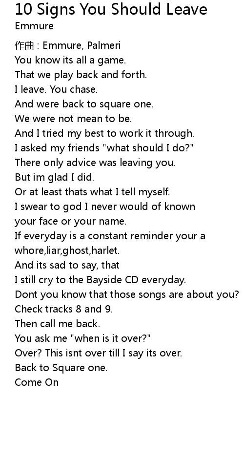 | Song | 10 Signs You Should Leave |
