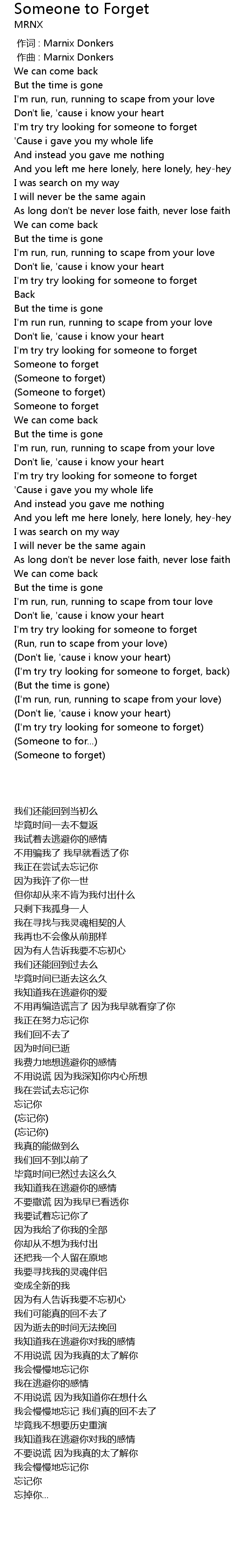 | [02:39.177] | I' m try try looking for someone to forget, back |