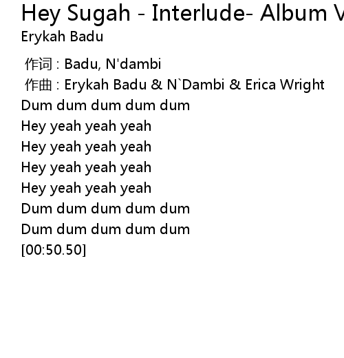 | [00:01.000] | zuò qǔ : Erykah Badu N Dambi Erica Wright |