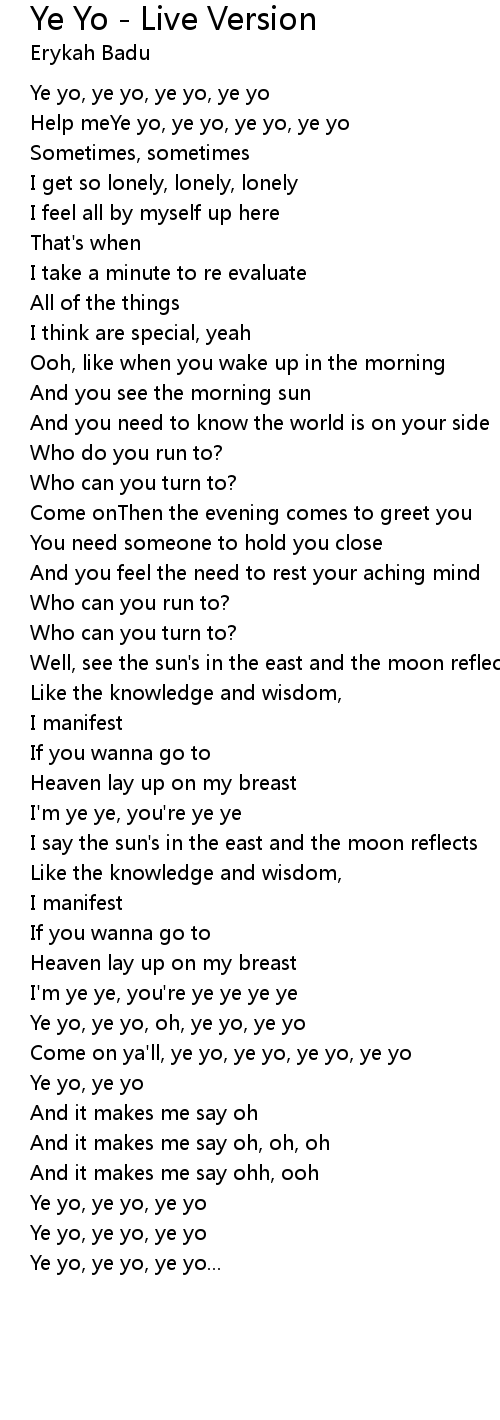 Ye yo, ye yo, oh, ye yo, ye yo |