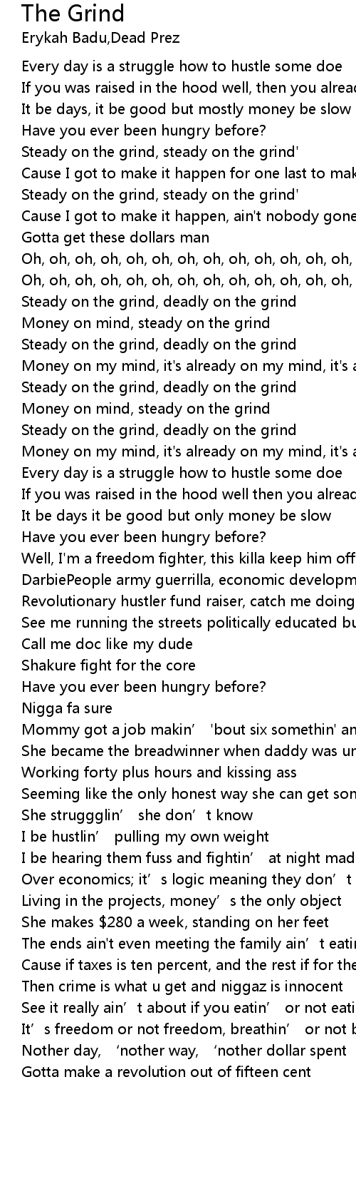 | Steady on the grind, deadly on the grind | |