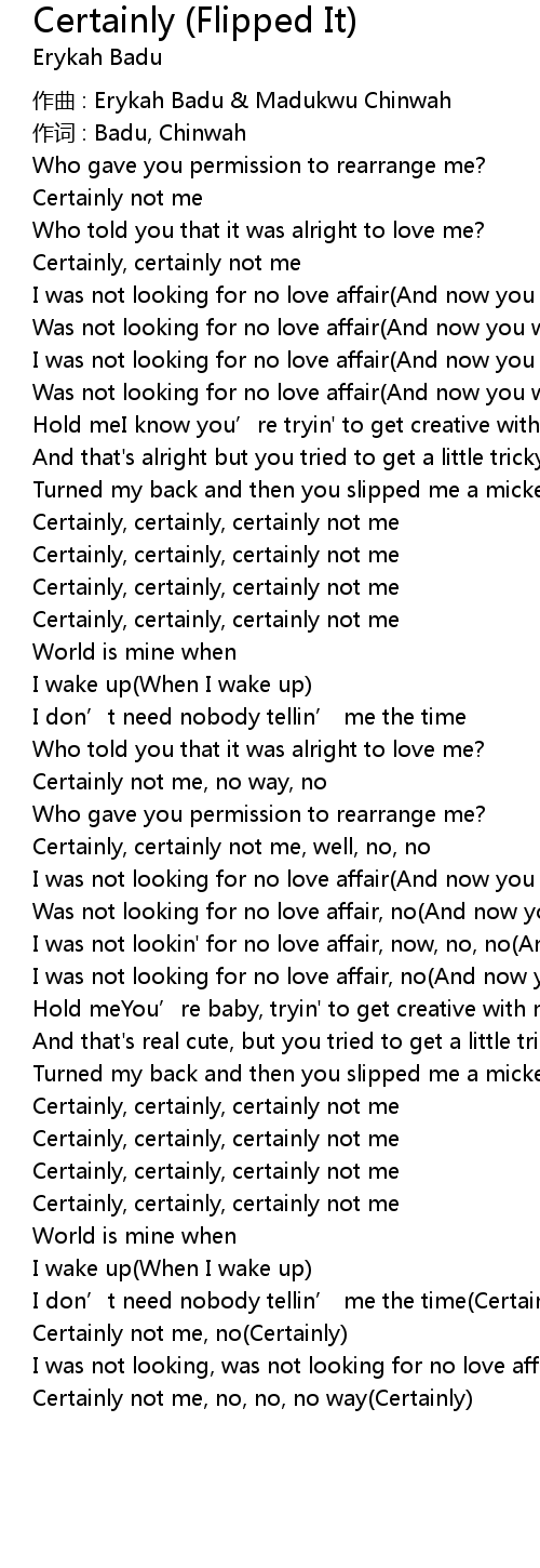 | I don’t need nobody tellin’ me the time(Certainly) | |
