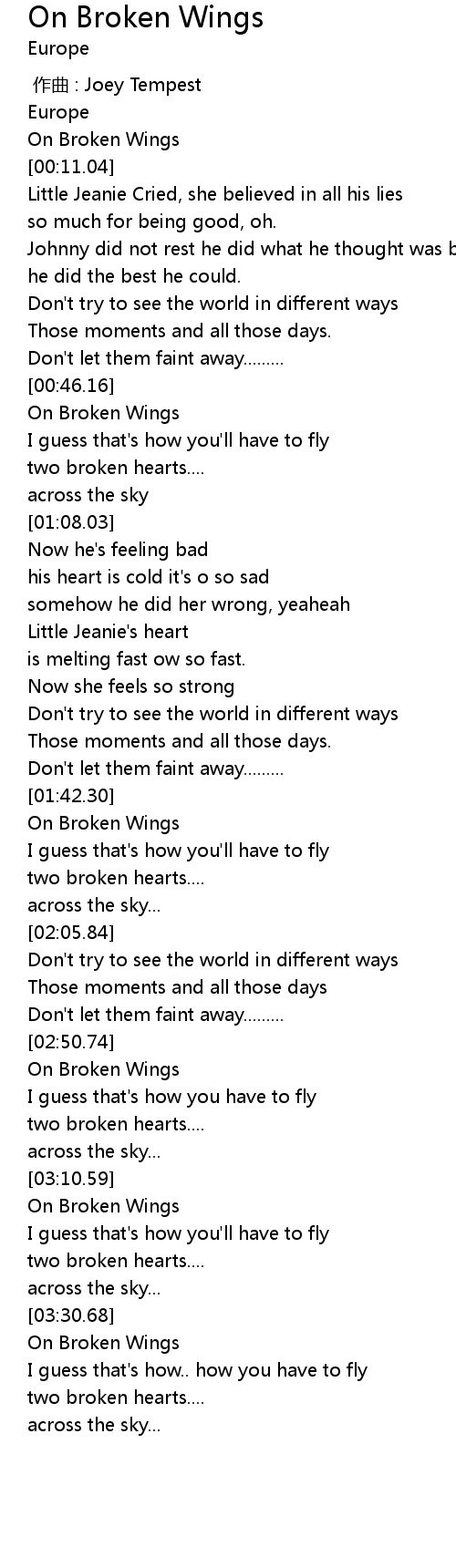 | [03:16.44] | I guess that' s how you' ll have to fly |