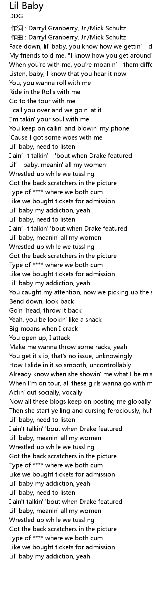 | [00:59.64] | Lil' baby my addiction, yeah |