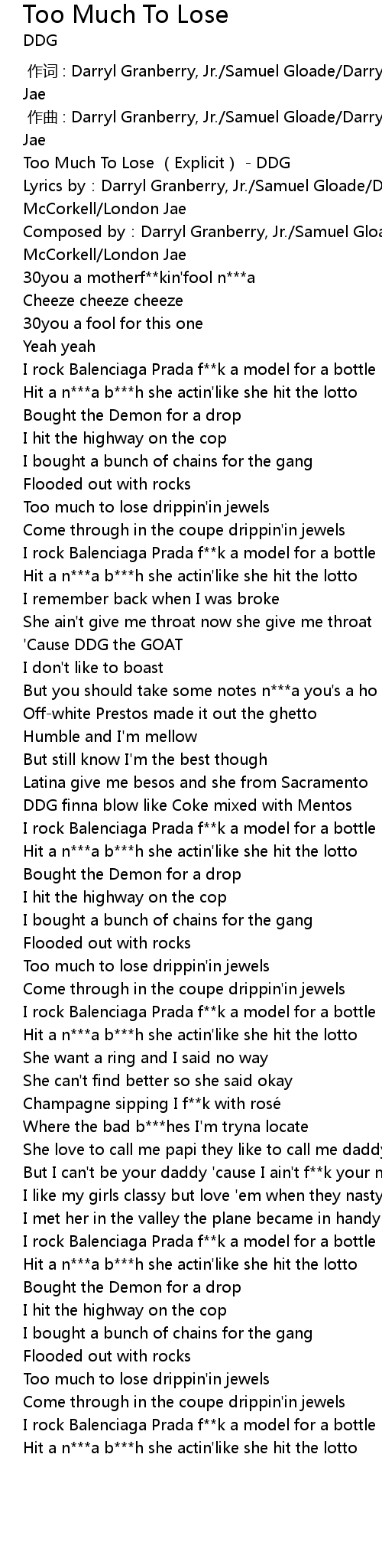 | [00:00.10] | Too Much To Lose Explicit DDG |