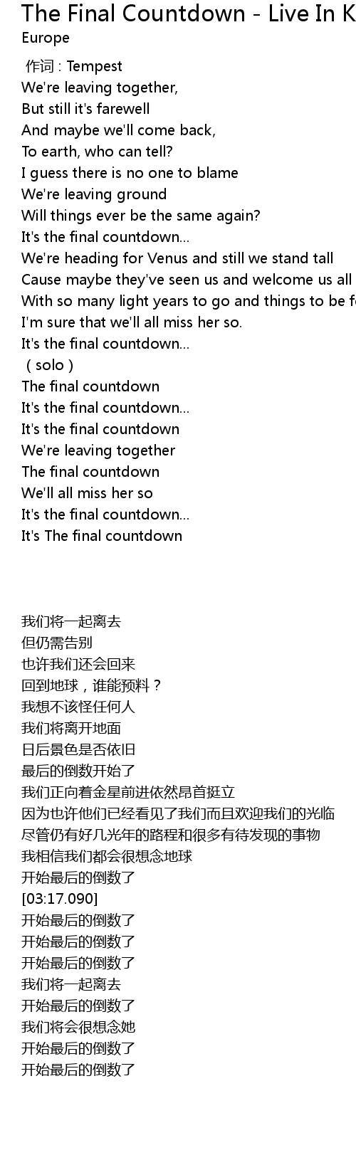 | Song | The Final Countdown - Live In Knebworth, UK 2010 |