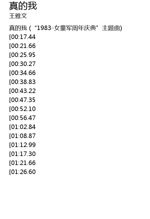 | [00:02.45] | 真的我 (“1983-女童军周年庆典”主题曲) |