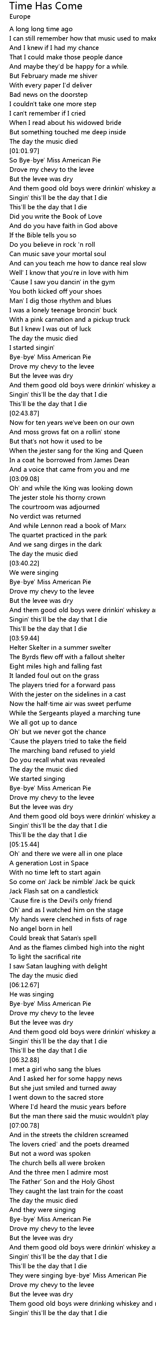 [08:05.42] They were singing bye-bye' Miss American Pie