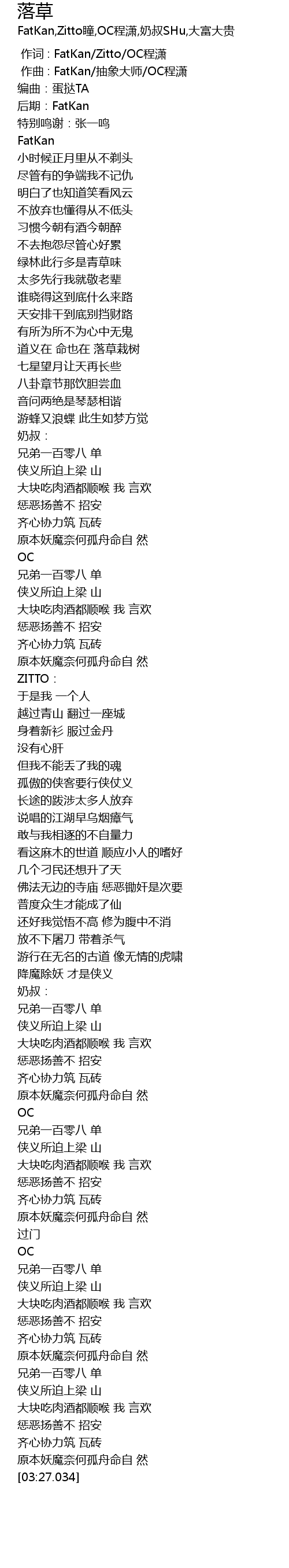 | [00:00.000] | 作词 : FatKan/Zitto/OC程潇 |
