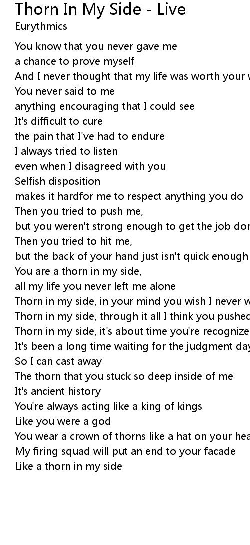 You are a thorn in my side, |