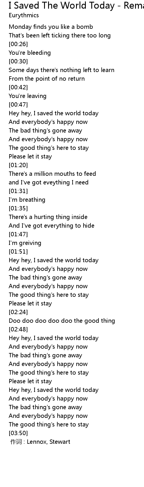 | [00:00.00] | 作词 : Lennox, Stewart |