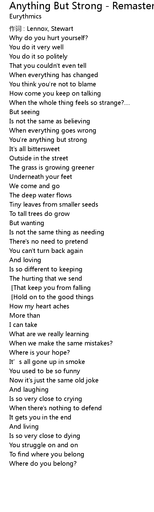 | Is so difficult to mend Hold on to the good things That keep you from falling down Hold on to the good things That keep you from falling down | |