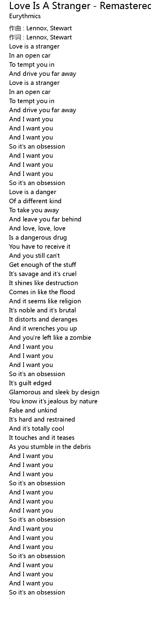 | 作词 : Lennox, Stewart | |