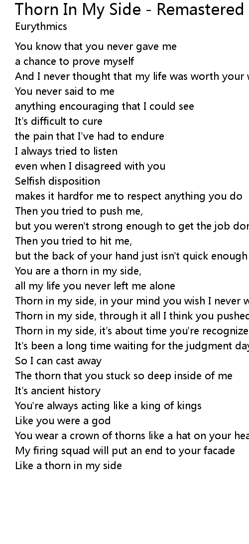 You are a thorn in my side, |