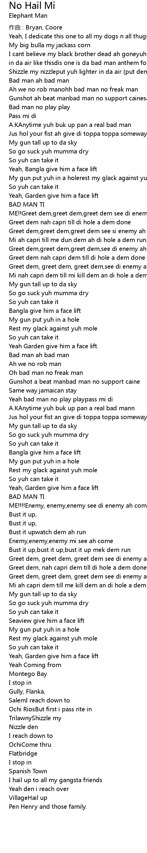 | Gunshot ah beat manbad man no support cainesame way jamaican stay | |