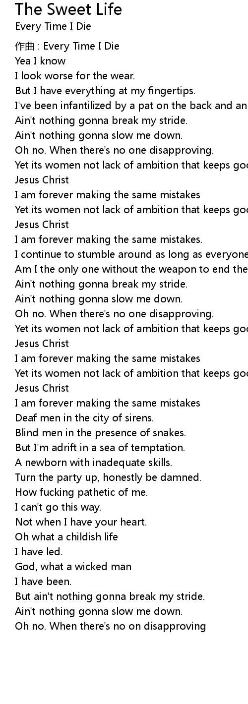 | But ain't nothing gonna break my stride. | |