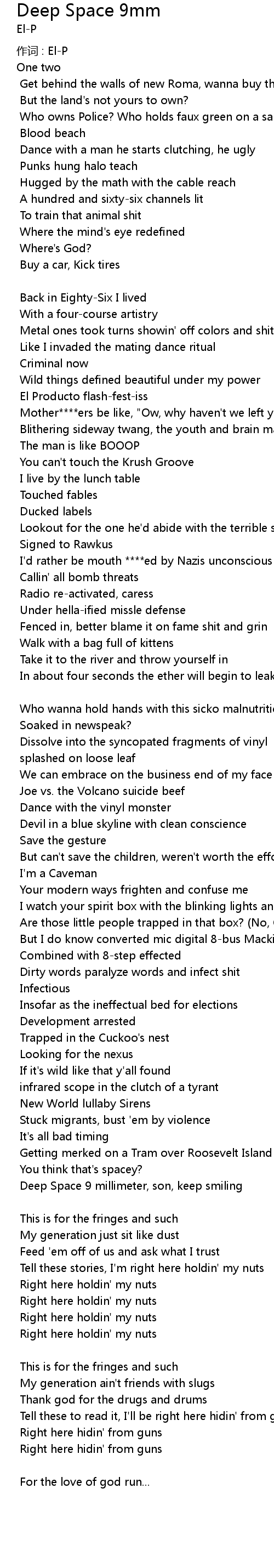 | Tell these to read it, I'll be right here hidin' from guns | |
