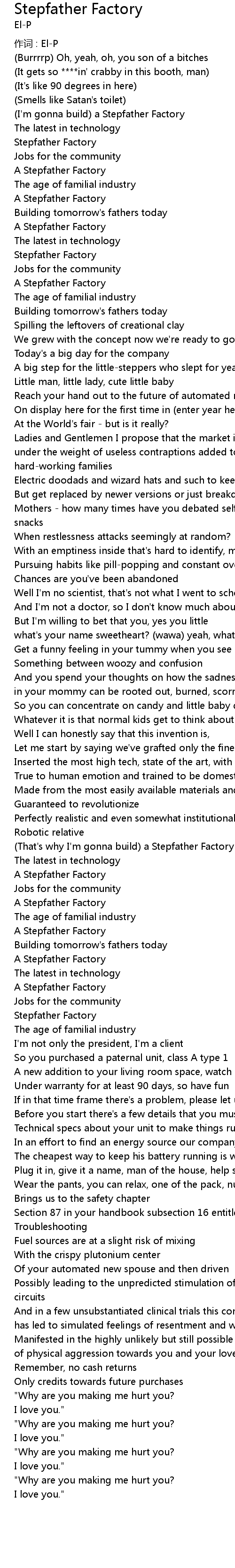 | That' s why I' m gonna build a Stepfather Factory | |