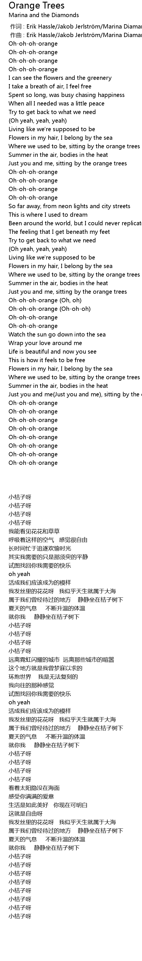 | [00:41.59] | Where we used to be, sitting by the orange trees |