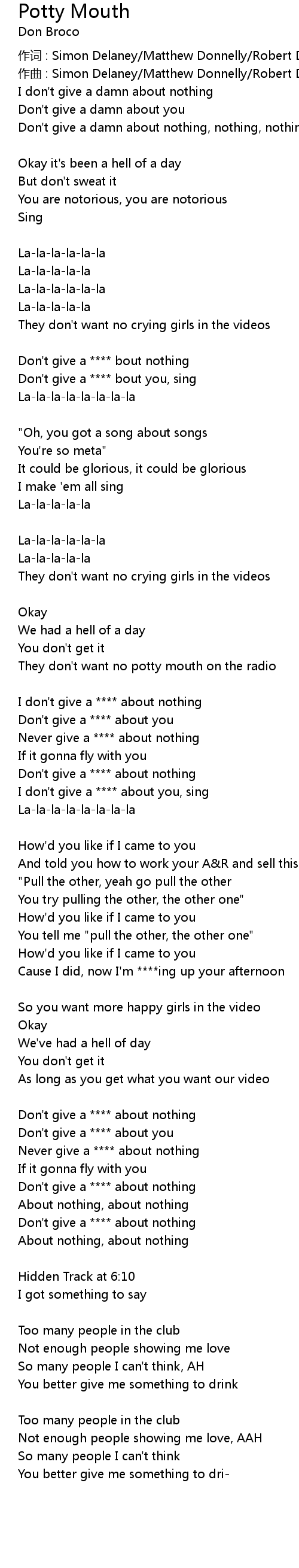 | Don' t give a damn about nothing, nothing, nothing, nothing | |