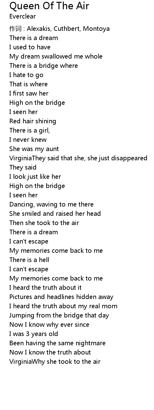 | Song | Queen Of The Air |