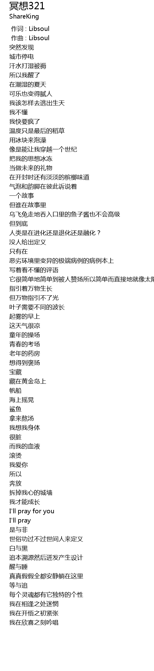 | [00:00.000] | 作词 : Libsoul |