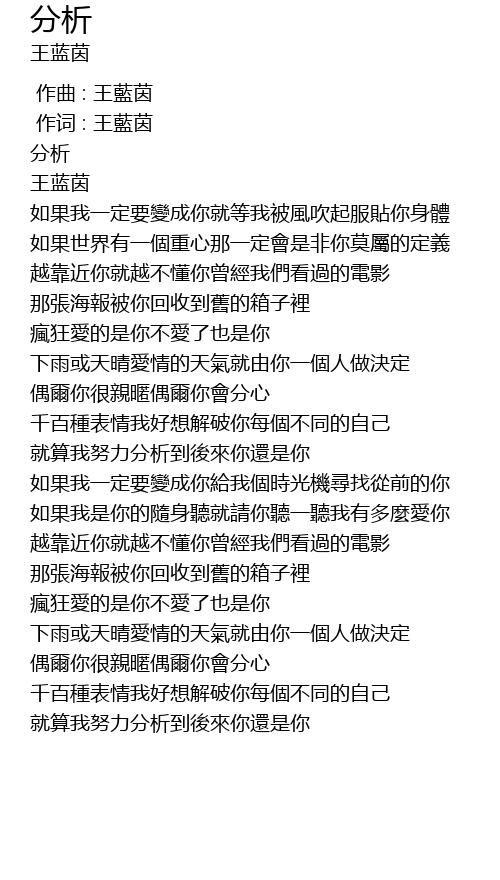 | [00:00.487] | 作词 : 王藍茵 |