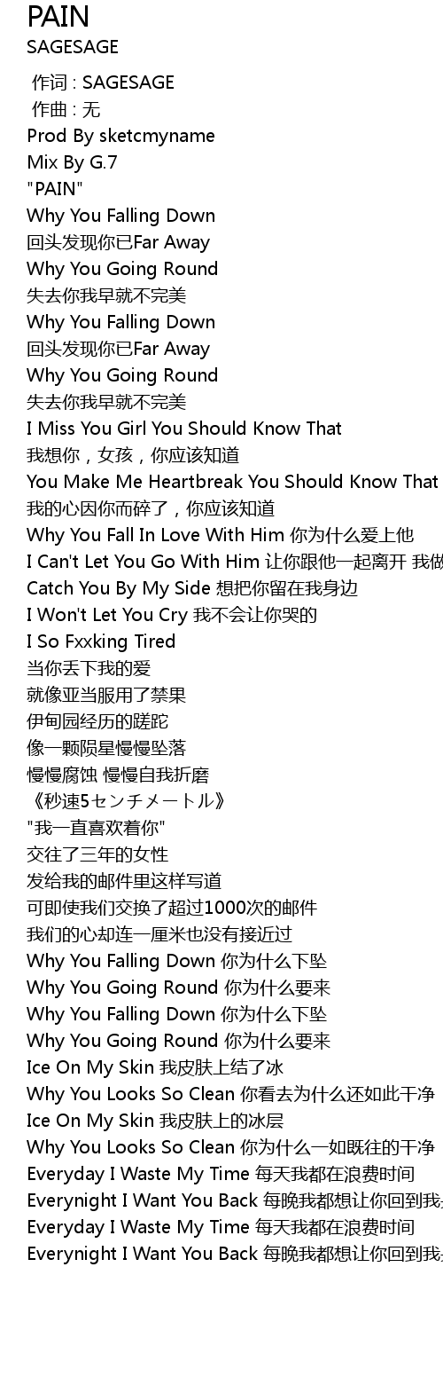 | [02:33.680] | Why You Falling Down nǐ wèi shí me xià zhuì |