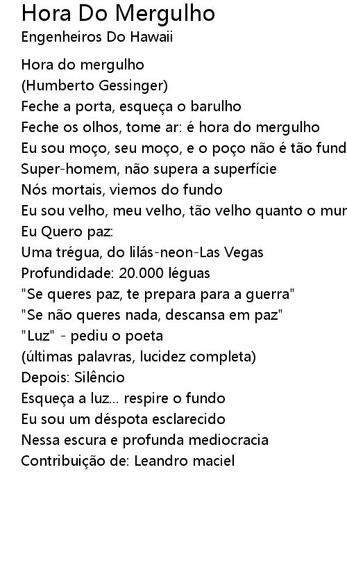 | Song | Hora Do Mergulho |