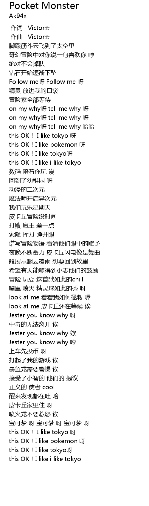 | [00:40.907] | this OK!I like pokemon 呀 |