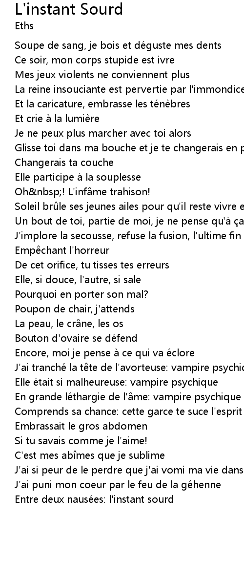 | Soleil brûle ses jeunes ailes pour qu'il reste vivre en moi | |