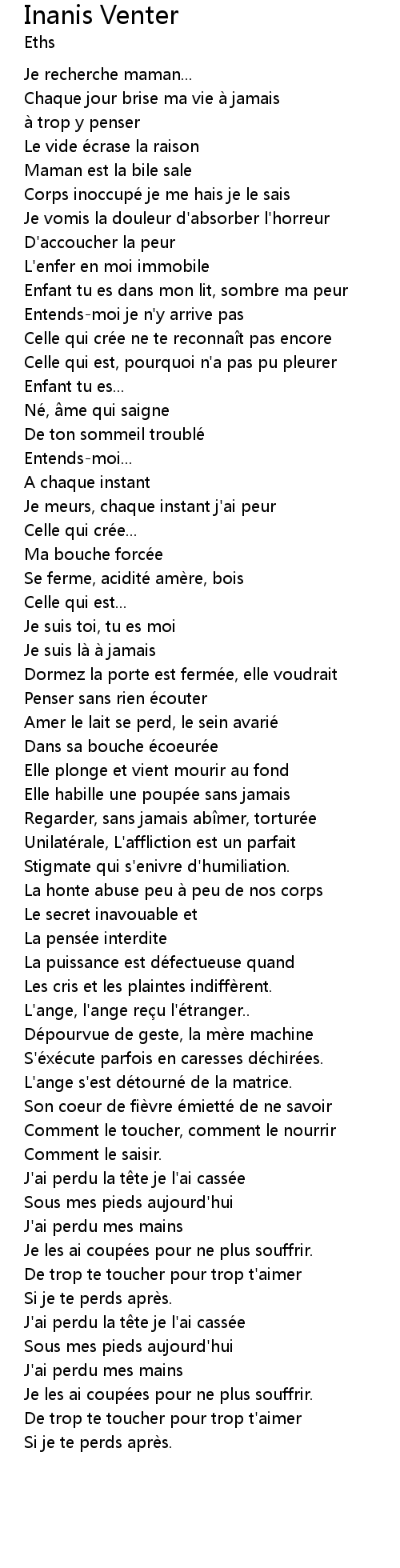 | Enfant tu es dans mon lit, sombre ma peur | |