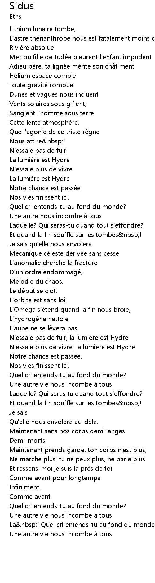| N' essaie pas de fuir, la lumie re est Hydre | |