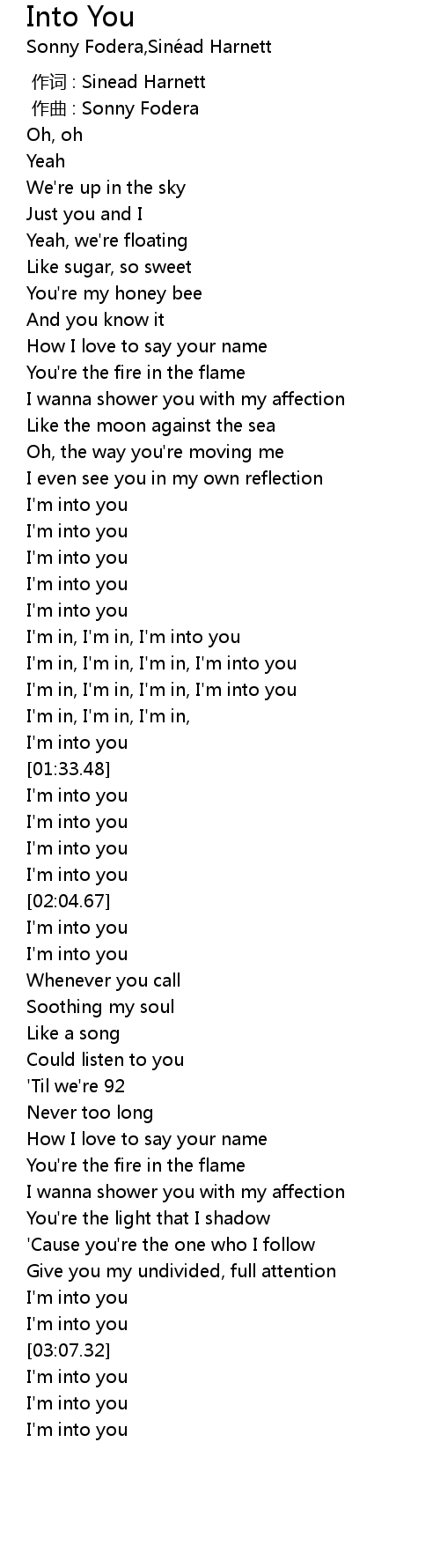 | [01:17.58] | I'm in, I'm in, I'm in, I'm into you |