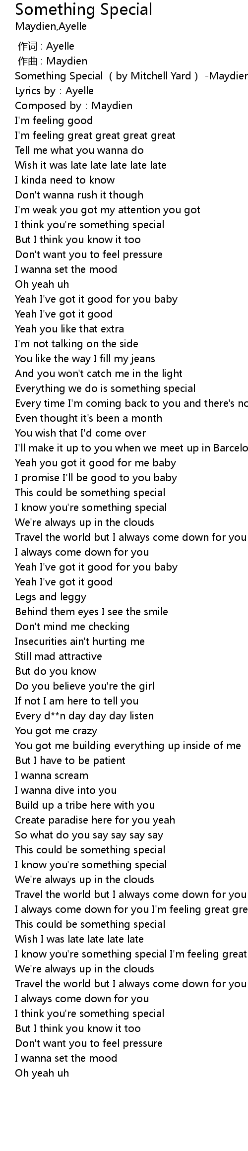 | [00:00.369] | Something Special (by Mitchell Yard) -Maydien/Ayelle |