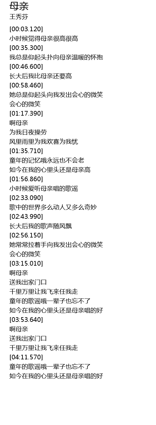 | [03:54.390] | 啊母亲 |