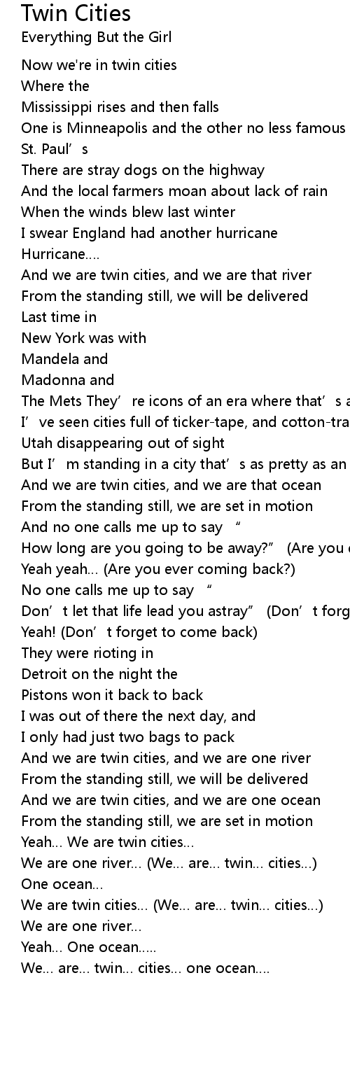 | We are one river… (We… are… twin… cities…) | |