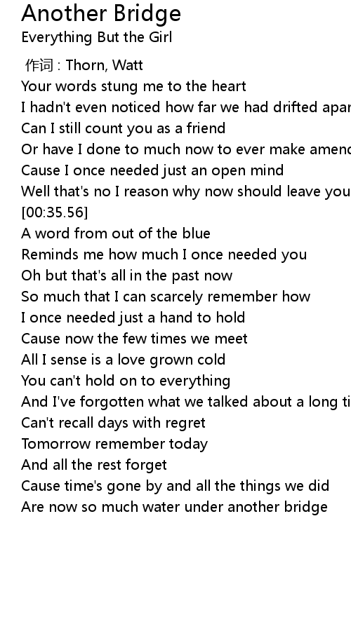 | [00:04.48] | I hadn' t even noticed how far we had drifted apart |
