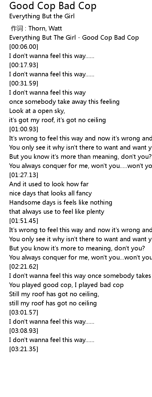 | [00:02.00] | Everything But The Girl Good Cop Bad Cop |