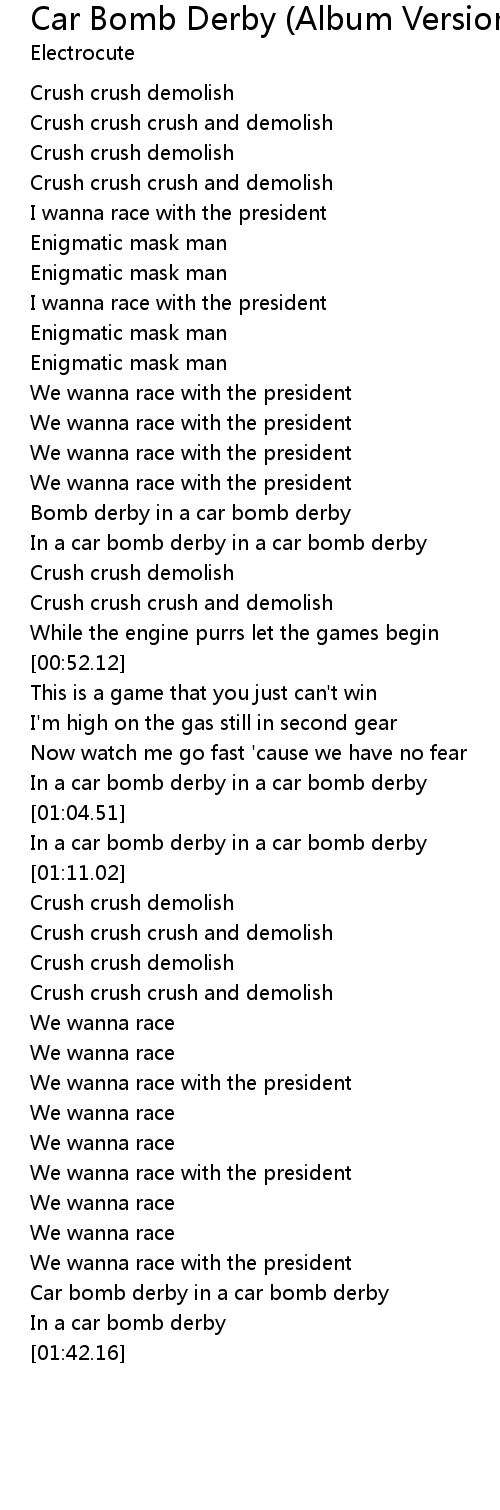 In a car bomb derby in a car bomb derby |