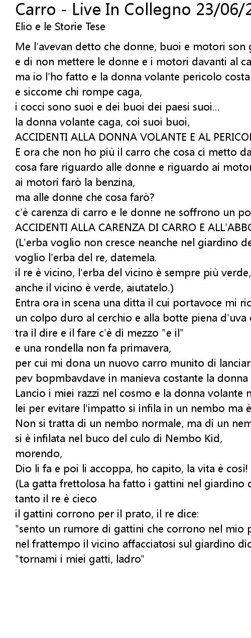 | ma io l' ho fatto e la donna volante pericolo costante mi ha rotto il carro, | |