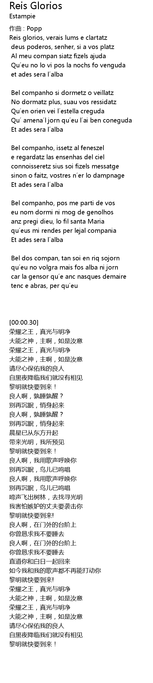 | Reis glorios, verais lums e clartatz | |