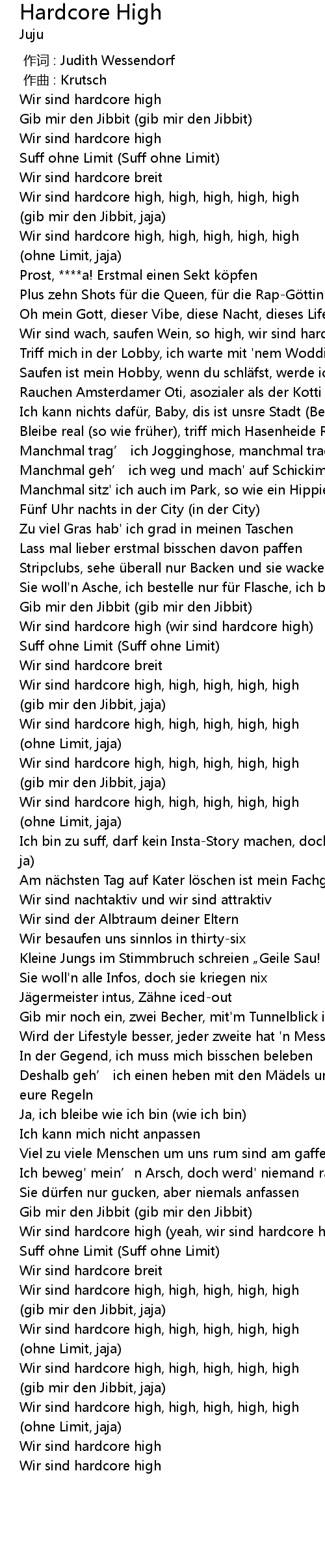 | [01:11.38] | Wir sind hardcore high wir sind hardcore high |