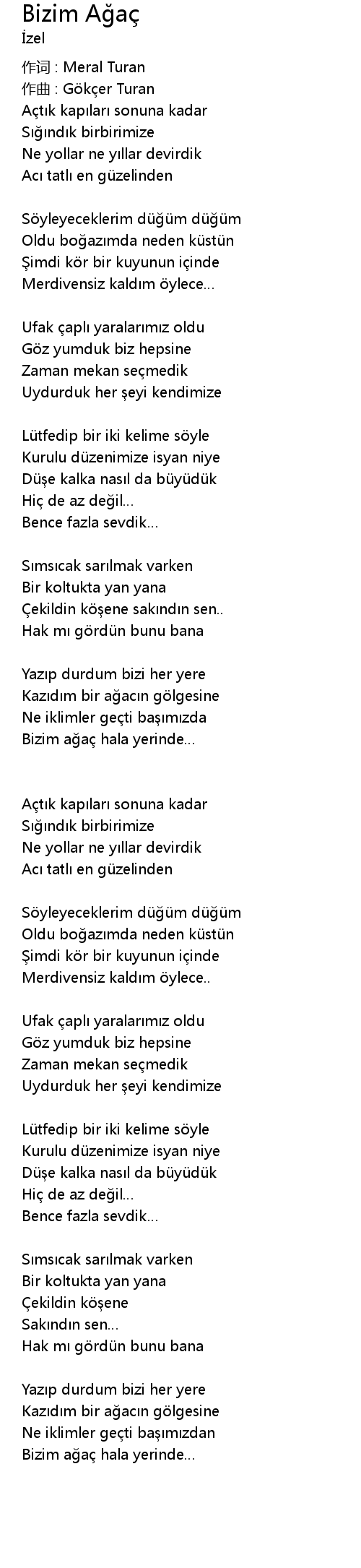 | Song | Bizim Ağaç |