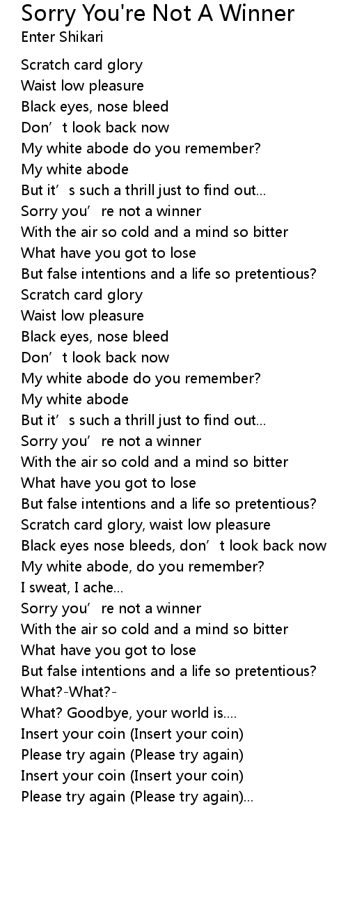 | Sorry you' re not a winner | |