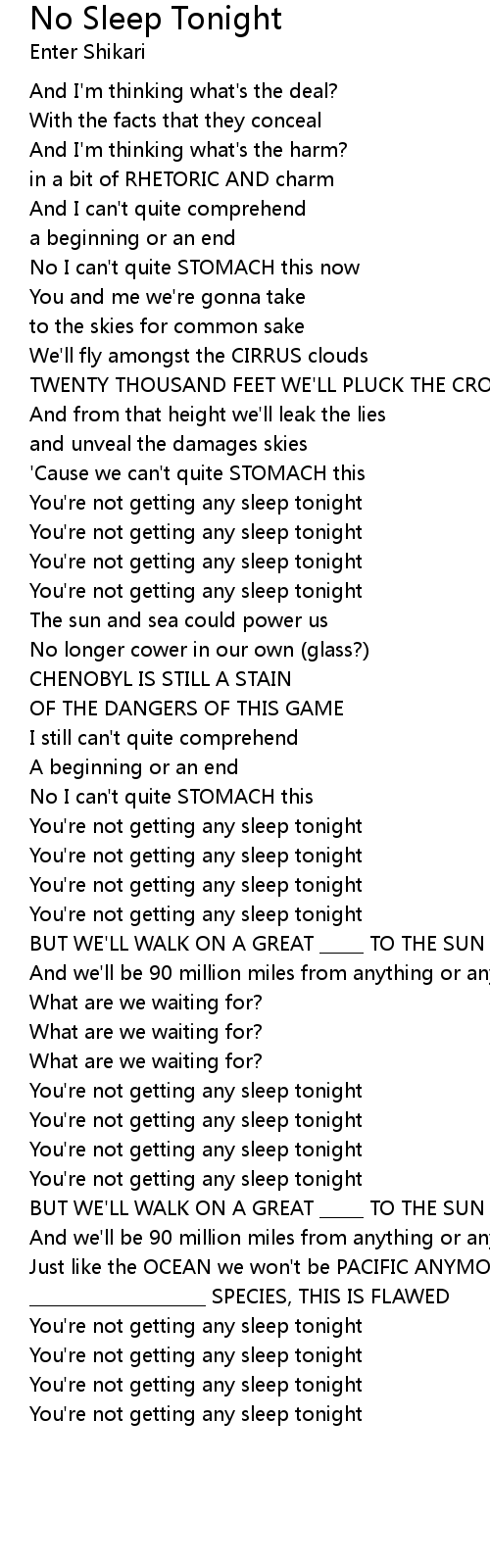 You're not getting any sleep tonight |