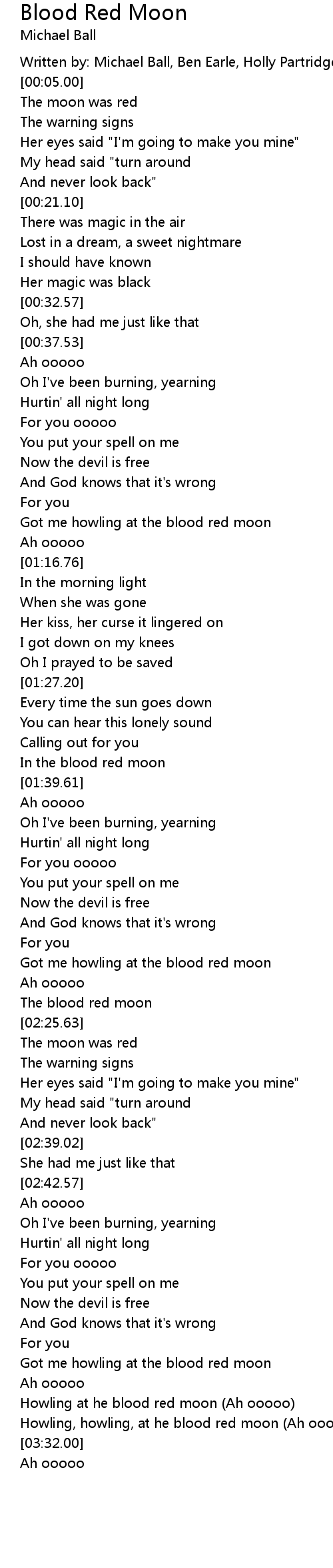 Howling, howling, at he blood red moon (Ah ooooo) |