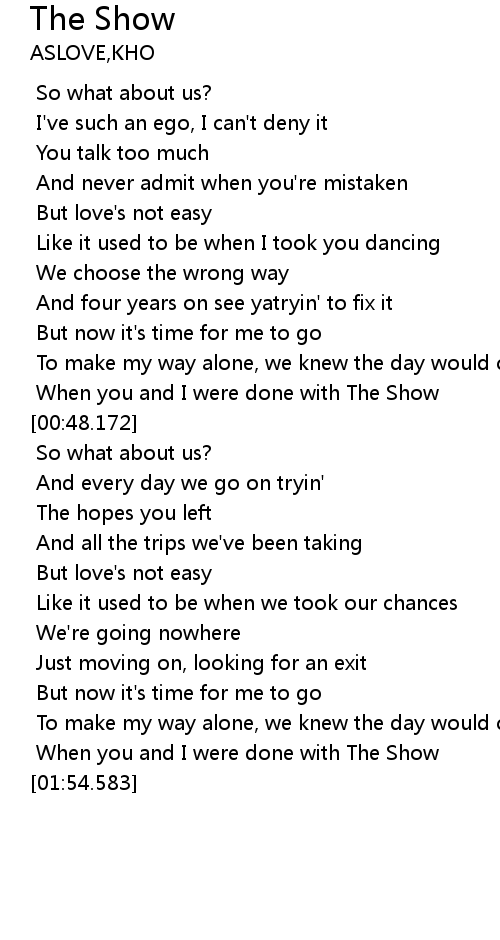 | [00:39.874] | To make my way alone, we knew the day would come |