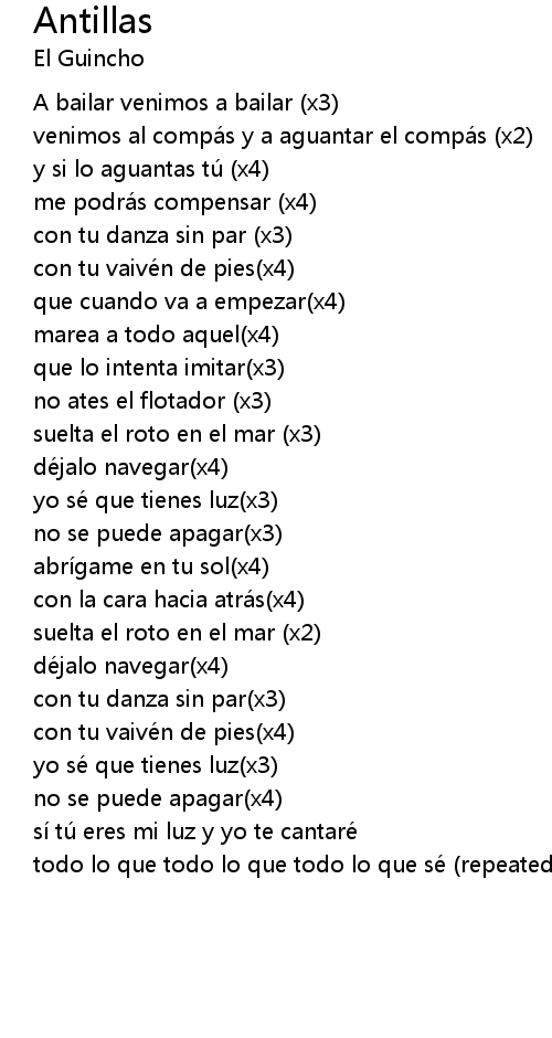 | todo lo que todo lo que todo lo que sé (repeated til end) |